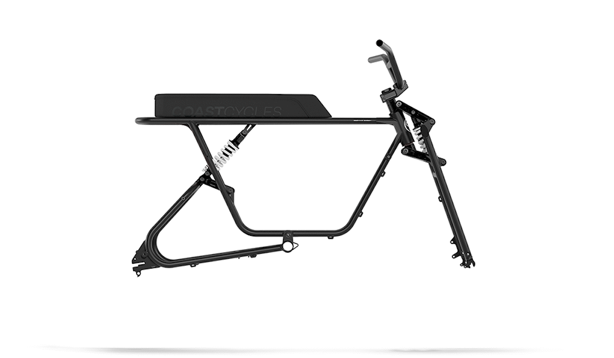 Frame kit includes front triangle, rear triangle, Buzzwalker fork, frame linkage kit, fork linkage complete kit, handlebar, stem, headset, steerer, frame bumpers, shocks with coil spring, chain tensioners and saddle.